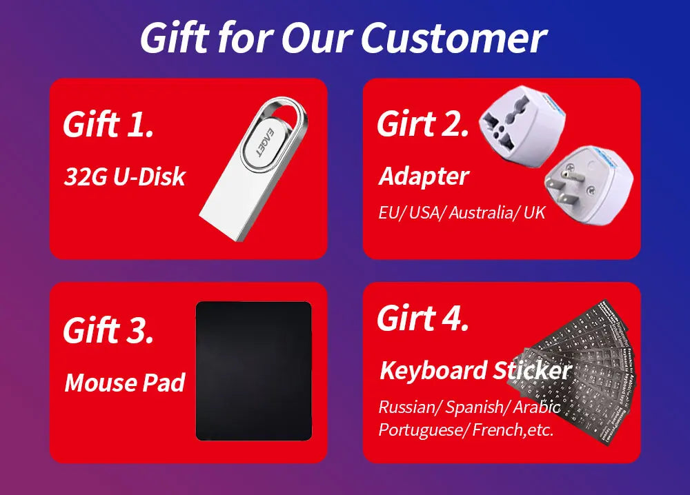 All laptops are English keyboards, we provide keyboard stickers in different languages for free, please leave a message to inform the sticker language.