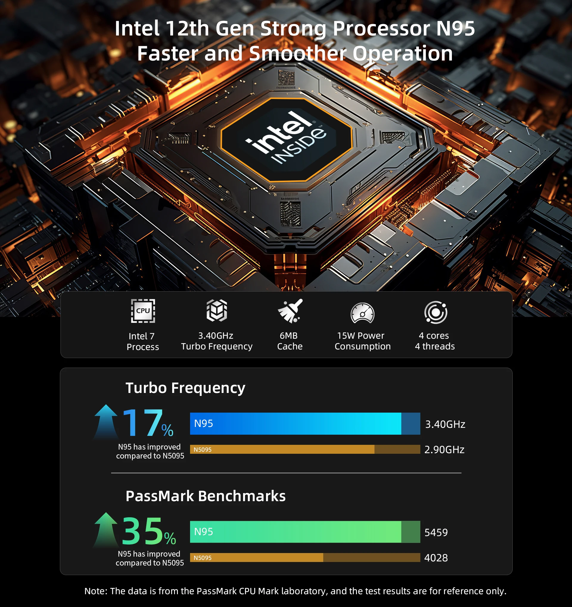 • powerful cpu: bu laptop, donatlı bir intel 12. nesil n95 i̇şlemci cpu ile, oyun ve çoklu görevler için sorunsuz ve verimli performans sağlar.