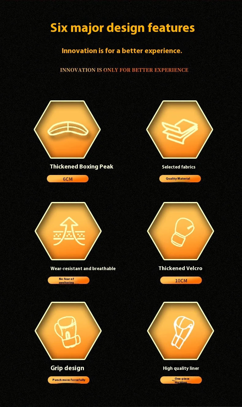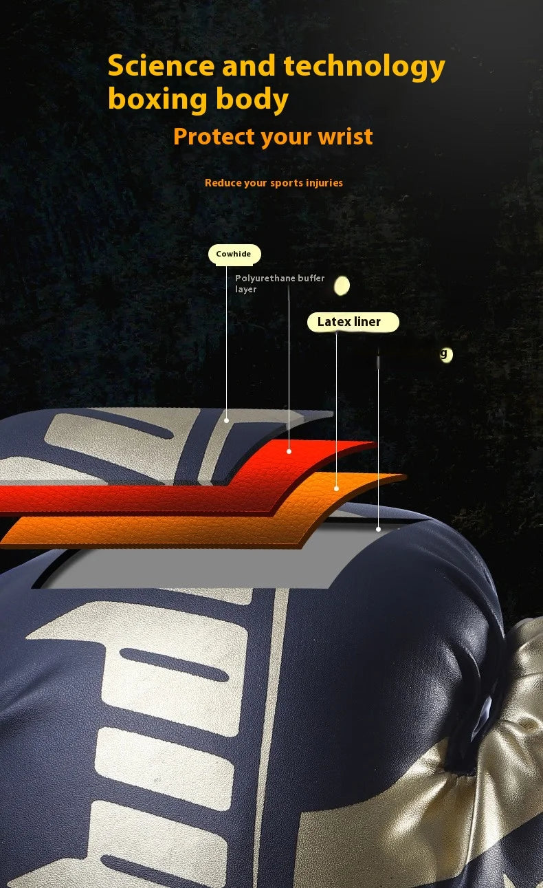 Boxing Gloves Breathable Professional Boxing Gloves Comfortable Fighting Taekwondo Mitts for Training Sandbag Features: 1.Combat-Ready Durability: Crafted with resilient PU leather, these boxing gloves withstand intense wear and tear, ensuring a long-lasting life span for rigorous combat sports, including boxing, MMA, and martial arts. 2.Superior Protection: Our kickboxing gloves feature high-density foam padding that provides exceptional elasticity and cushioning, safeguarding your hands from injuries while delivering powerful punches with optimal shock absorption. 3.Breathable Comfort: Designed with ventilation holes in the palm, these sanda boxing gloves promote airflow and reduce sweat accumulation during fights, ensuring your hands stay cooler and more comfortable through every round. 4.Ergonomic Fit: The one-piece inner liner of our professional boxing gloves is engineered to conform to the natural shape of your fist, providing a snug and comfortable fit that enhances grip and allows for precise movement. 5.Secure Wrist Support: Equipped with an extra-wide hook and loop fastener strap, our punching training gloves offer enhanced wrist stability, ensuring a tight fit that prevents slips and supports your wrists during high-impact training and sparring sessions. Specification: Origin: Mainland China Main Material: PU Size: Adult/Child (Optional) Note: Due to the different monitor and light effect, the actual color of the item might be slightly different from the color showed on the pictures. Thank you! Please allow 1-2cm measuring deviation due to manual measurement. Boxing Gloves Breathable Professional Boxing Gloves Comfortable Fighting Taekwondo Mitts for Training Sandbag Features: 1.Combat-Ready Durability: Crafted with resilient PU leather, these boxing gloves withstand intense wear and tear, ensuring a long-lasting life span for rigorous combat sports, including boxing, MMA, and martial arts. 2.Superior Protection: Our kickboxing gloves feature high-density foam padding that provide