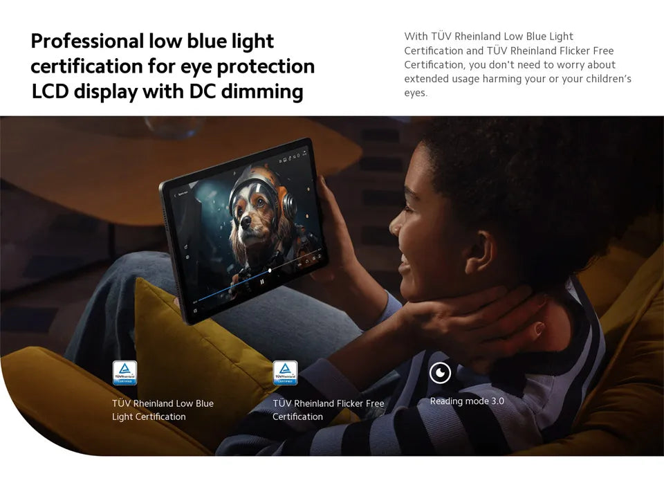 With TÜV Rheinland Low Blue Light Certification and TÜV Rheinland Flicker Free Certification, you don't need to worry about extended usage harming your or your children's eyes.