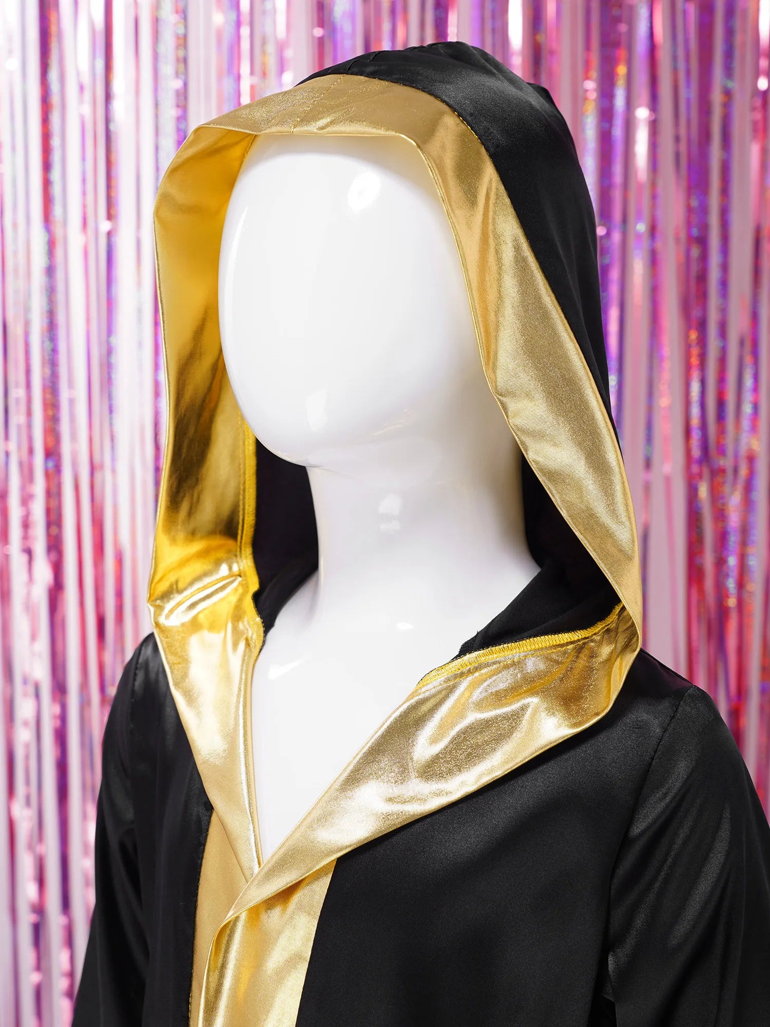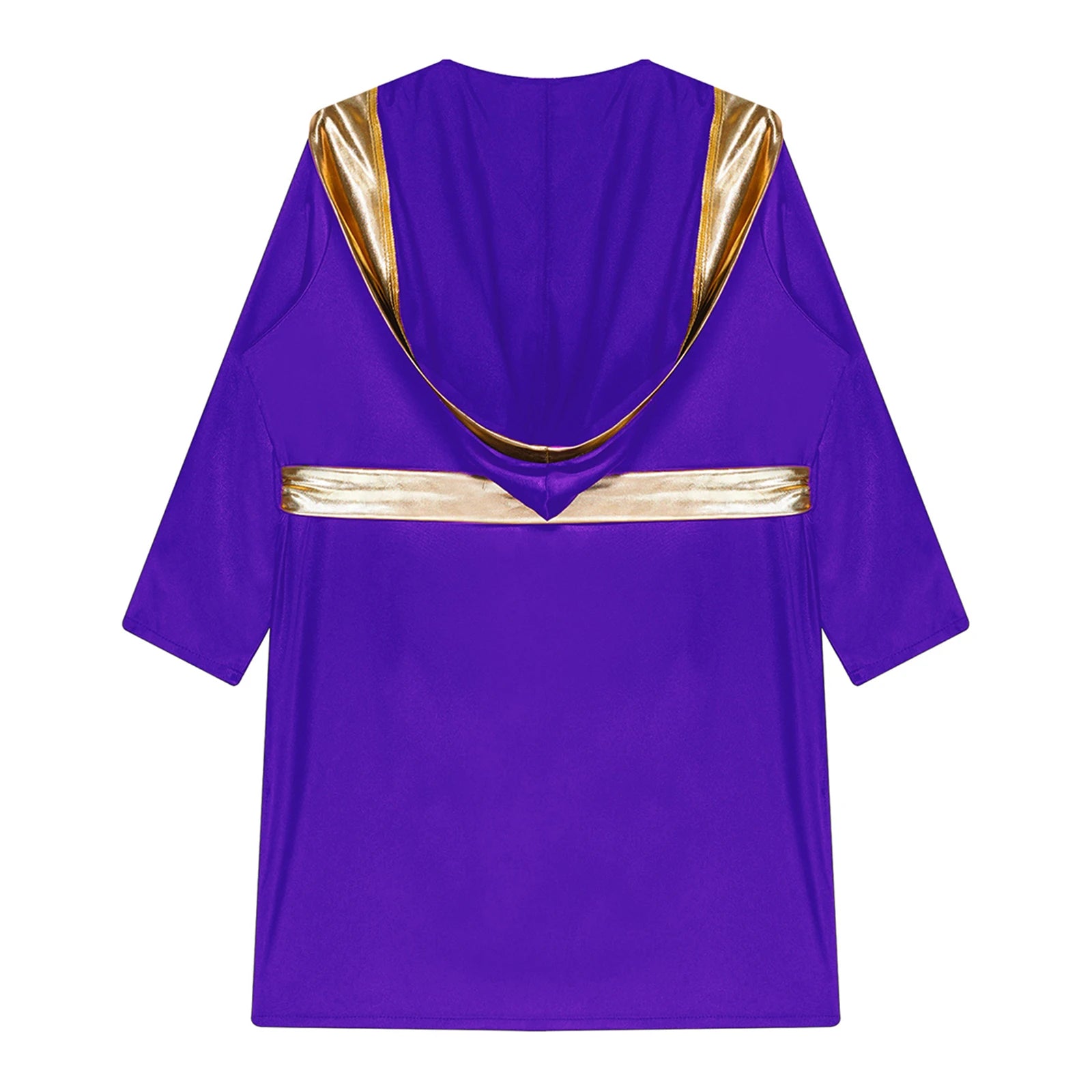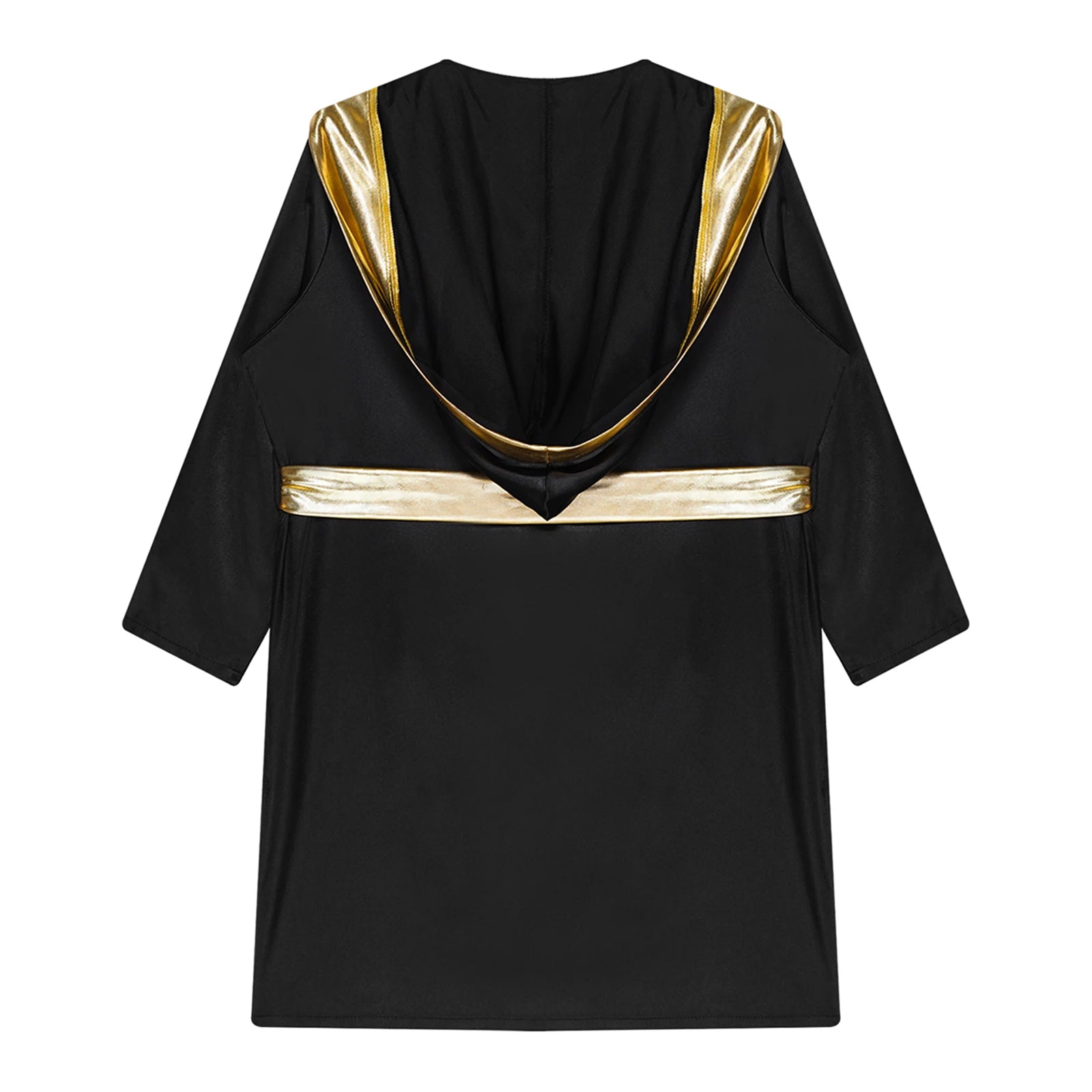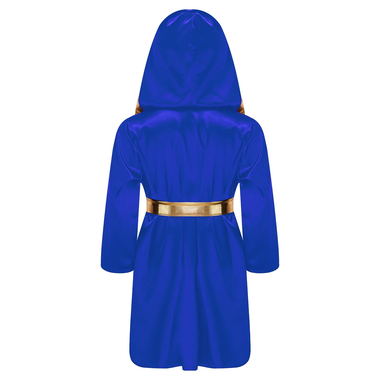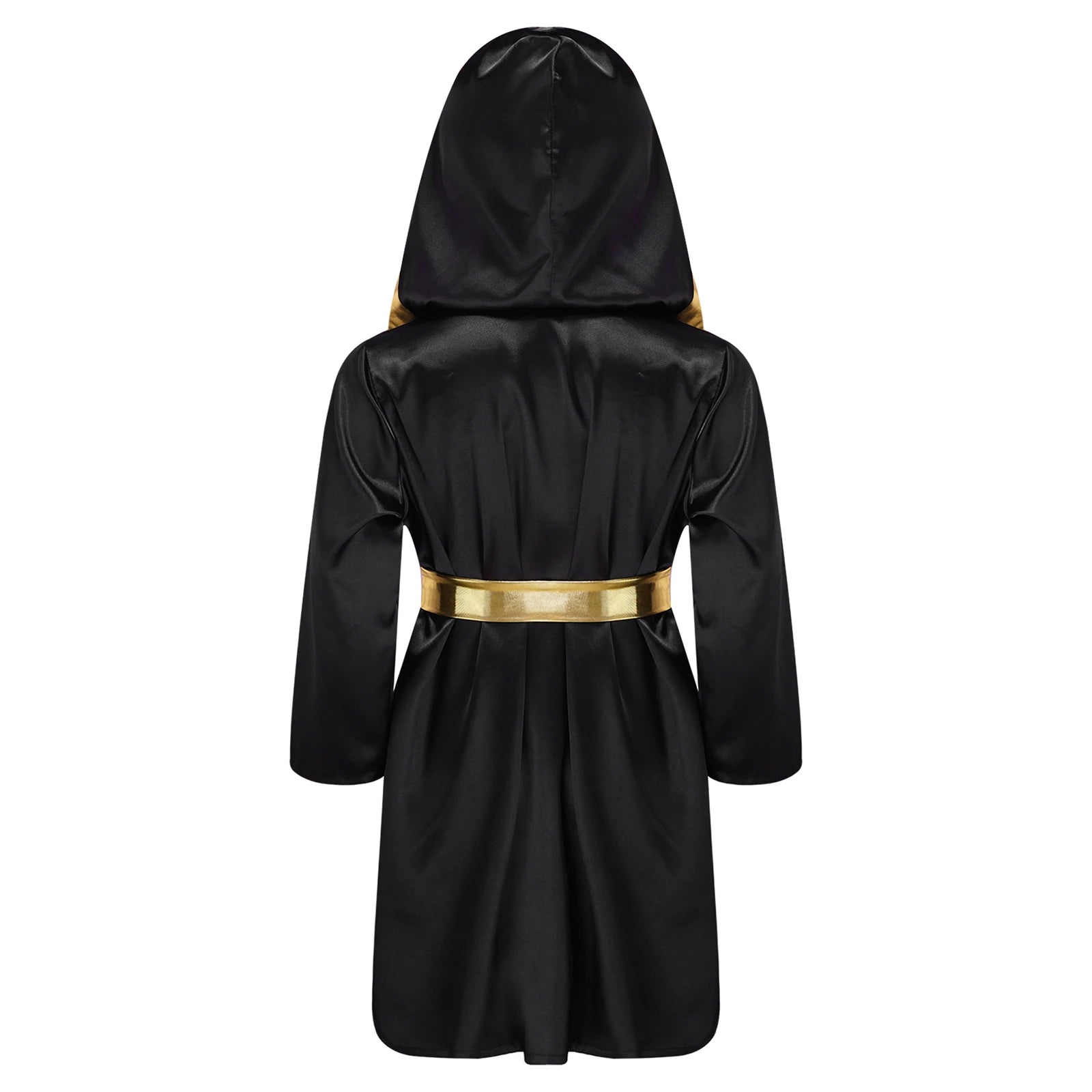 Satin hooded robe with two fake pockets and gold metallic trim to make your child look like a champion boxer.