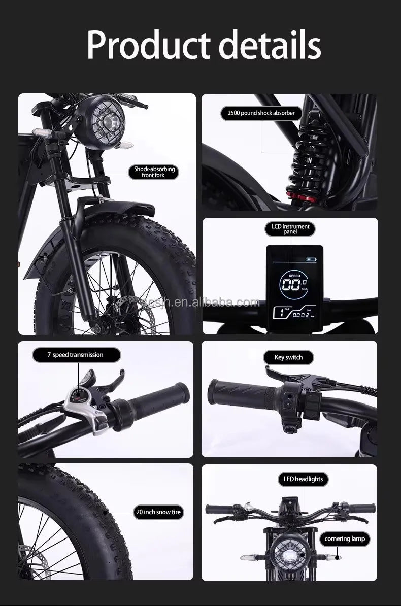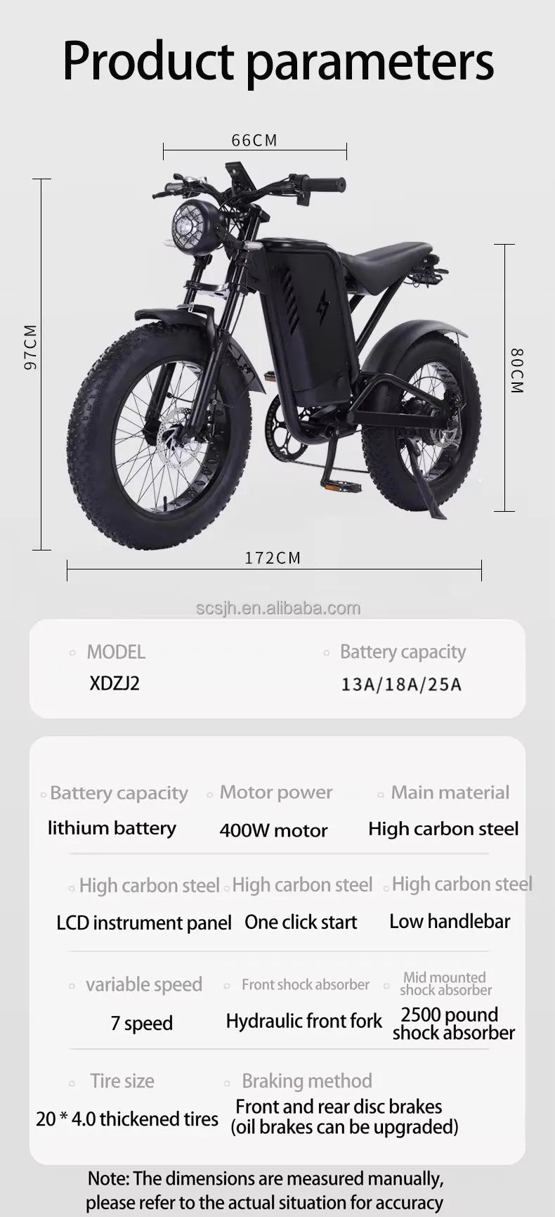 20-inch fat tire design, 7-level speed change 400 watt motor LED headlight High elastic shock absorption system Solid-grip